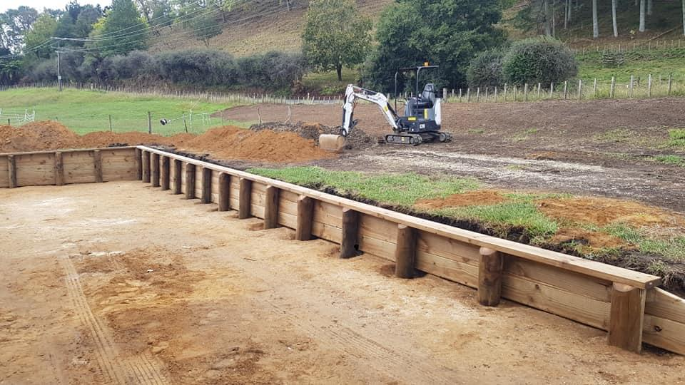 A retaining wall has to be strong enough to hold the load of soil pressing against it – this is what determines the size of the poles and the thickness of the timber to be used.